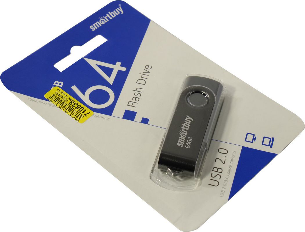 Съемный носитель 64Гб SmartBuy SB064GB2TWK USB2.0 черный 2.0 Twist