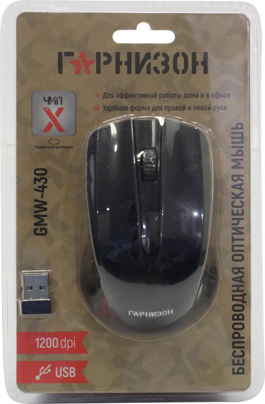 Мышь Гарнизон GMW-430 беспроводная черный чип X, ый, 1200 DPI, 2 кн.+ колесо-кнопка, блистер
