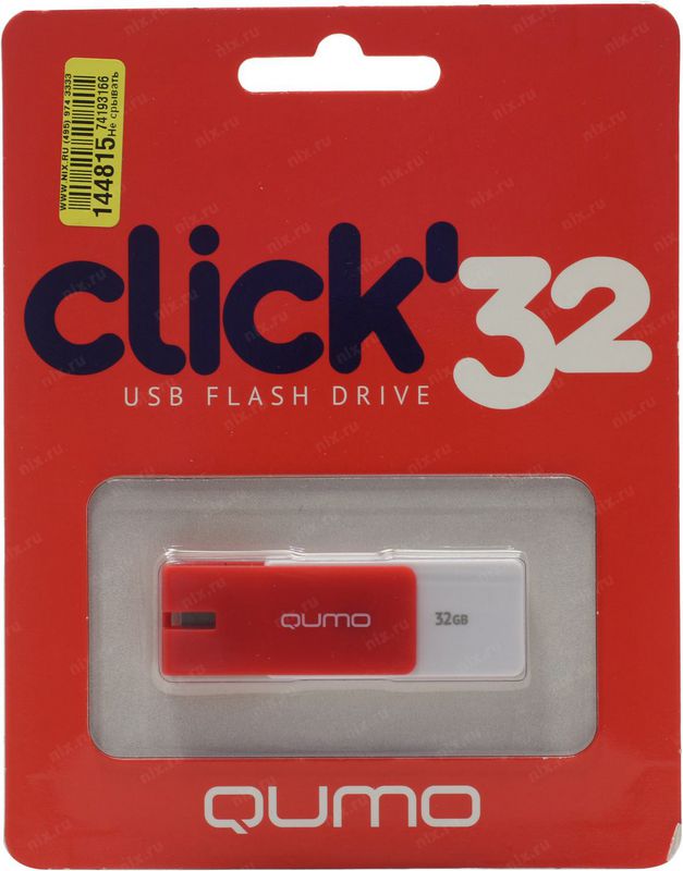 Съемный носитель 32Гб QUMO QM32GUD-CLK-CRIMSON USB2.0 бело-красный Click