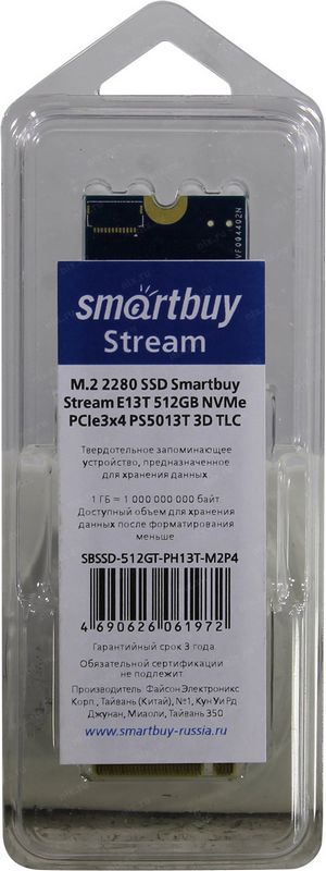 Накопитель SSD SmartBuy SBSSD-512GT-PH13T-M2P4 512Гб M.2 2280 TLC 300TBW Stream E13T 3D