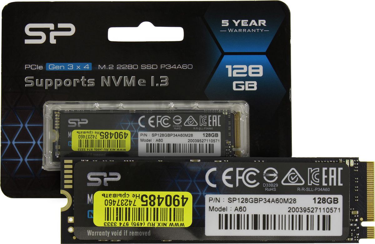 Накопитель SSD Silicon Power SP128GBP34A60M28 128Гб M.2 2280 TLC 75TBW