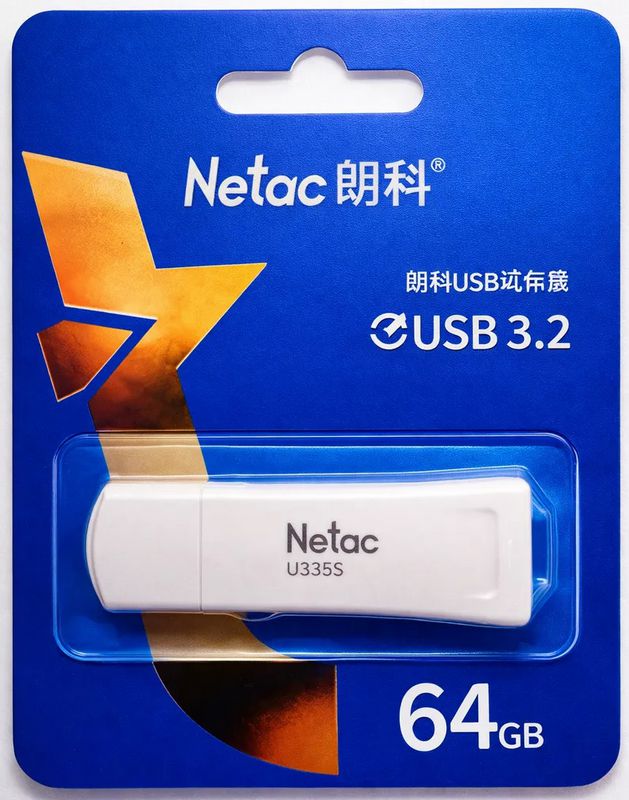 Съемный носитель 64Гб Netac U335S USB3.0 белый механическая защита от записи