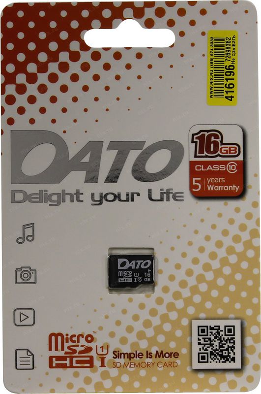Карта памяти 16Гб DATO DTTF016GUIC10 microSDHC Class 10