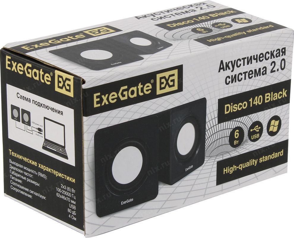 Акустическая система ExeGate EX287057RUS 2.0 2x3W черный Disco 140 (питание USB)