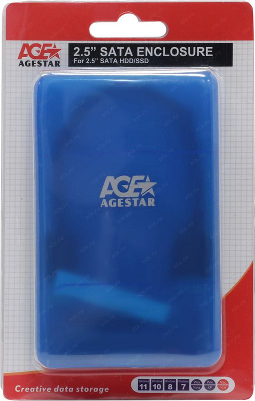 Корпус для HDD/SSD Agestar 3UBCP3 2,5” USB3.1 пластик синий SATA