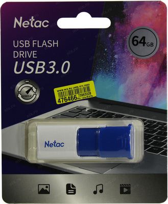 Съемный носитель 64Гб Netac NT03U182N-064G-30BL USB3.0 синий сдвижной корпус, пластиковая бело-синяя