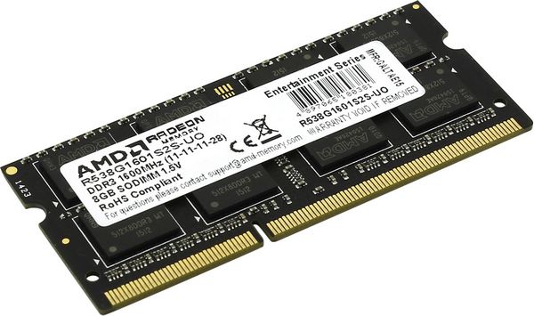 Оперативная память 8Гб AMD R538G1601S2S-U DDR3 PC3-12800 SODIMM CL11 1,5V
