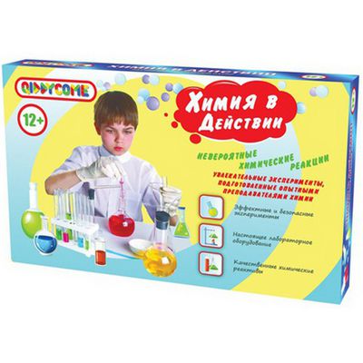 Научно-познавательный набор «Qiddycome» «Химия в действии» поможет ребенку познакомиться с увлекательным миром химии. Юные ученые будут проводить различные эксперименты с самыми разными химическими элементами – кислотами, металлами, щелочами, - и наблюдать поразительные реакции. Ребенок своими глазами увидит различные превращения веществ, о которых он только читал. В набор «Химия в Действии» входят реактивы, стеклянные трубочки, чашечки, пробирки, графитовые стержни, фильтрованная бумага, мерные стаканчики, сухое горючее и все, что еще нужно для первичных химических опытов. Также, в наборе присутствует красочная подробная инструкция с описанием 44 опытов, которые можно провести. В нашем интернет магазине можно купить ST-CH5010 «Химия в Действии», который станет увлекательным подарком для тех, кто любит проводить эксперименты и интересоваться, почему в окружающем мире происходит именно так, а не иначе. Игра с набором поможет ребенку развить его интерес к наукам, созданию чего-то нового и необычного, изучению и развитию абстрактного и логического мышления, усидчивости, аккуратности, трудолюбия, умению следовать составленному плану, самостоятельности.