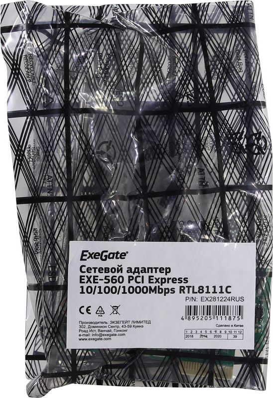 Сетевой адаптер ExeGate EX281224RUS PCI-E 1000Mbps PCI EXE-560 xpress 10/100/ RTL8111C (OEM)