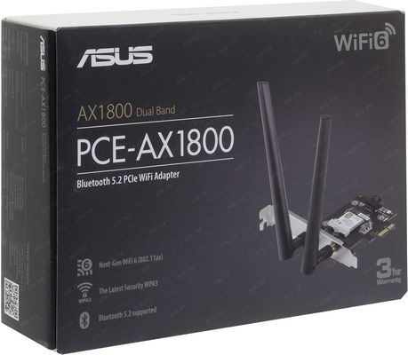 Сетевой адаптер Asus PCE-AX1800 PCI-E PCI PCE-AX3000 WIFI 802.11ax, 2402 + 574Mbpsб Adapter, 2 антенны, 90IG07A0-MO0B00
