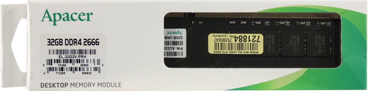 Оперативная память 32Гб APACER AU32GGB26CRBBGH DDR4 PC4-25600 CL19 1,2V 2666MHz UDIMM (-25600) (Retail) 2048x8 (/EL.32G2V.PRH)