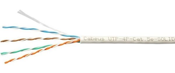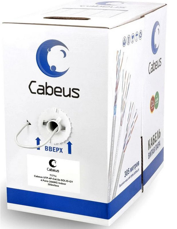 Кабель Cabeus UTP-4P-Cat.5e-SOLID-GY кат.5e 4 пары 305м 0,51мм экран. серый витая пара UTP U UTP , категория 5e, 24 AWG , одножильный, серый