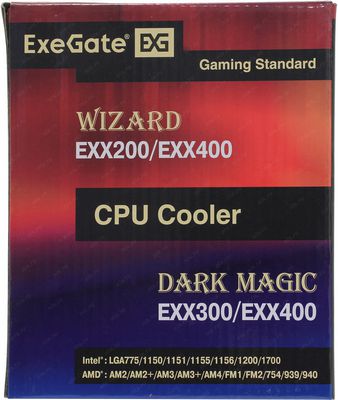 Кулер для процессора ExeGate EX293667RUS 140W 4pin Dark Magic EXX400V2-.RGB (Al+Cu, черное покрытие, 4 тепл.трубки, LGA775/1150/1151/1155/1156/1200/1700/AM2/AM2+/AM3/AM3+/AM4/FM1/FM2/754/939/940, TDP 140W, Fan 120mm, 1200-2100RPM, Hydro bearing, 11-24db,