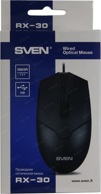 Мышь Sven SV-018214 черный RX-30 (2+1кл. 1000DPI, цвет. картон, каб. 2м.