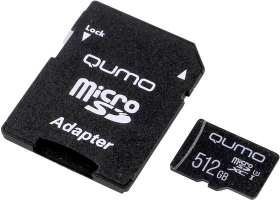 Карта памяти 512Гб QUMO QM512GMICSDXC10U3 microSDXC SD адаптер 90/80 МБ/с UHS-I U3, seria 3.0 с ом SD, красная картонная упаковка