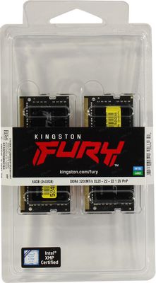 Оперативная память 64Гб Kingston KF432S20IBK2/64 DDR4 PC4-25600 SODIMM CL20 оперативная Kit of 2 FURY Impact