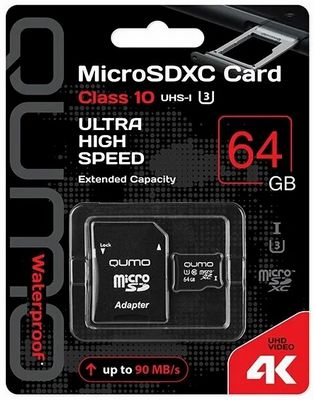 Карта памяти 64Гб QUMO MicroSDXC 64GB Class 10 UHS-I U3 black adp microSDXC Class 10