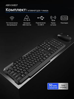 Комплект (клавиатура+мышь) беспроводной ABR 695430 KW807 черный, беспроводной, 2.4G, RU/EN