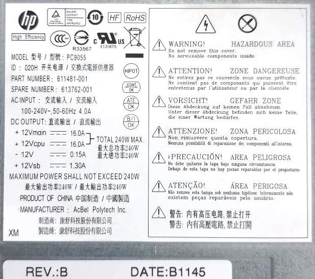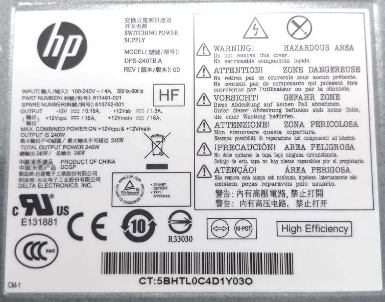 Блок питания HP DPS-240TB A / D10-240P1A / PC9055 REV:B Mini ITX 240W