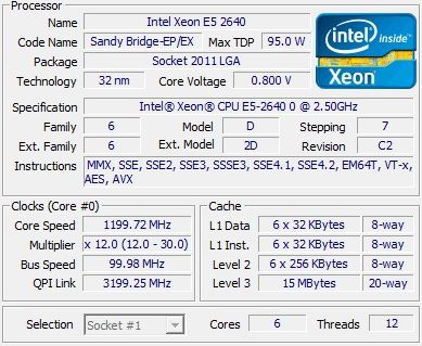 Процессор Intel Xeon E5-2640 Socket 2011 2,5ГГц 6С/12T 15MB