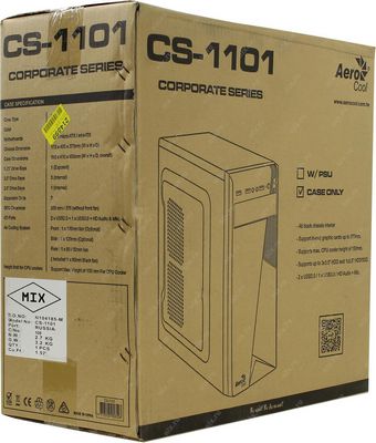 Корпус Aerocool CS-1101 ATX без БП черный 1x80mm 2xUSB2.0 1xUSB3.0 audio