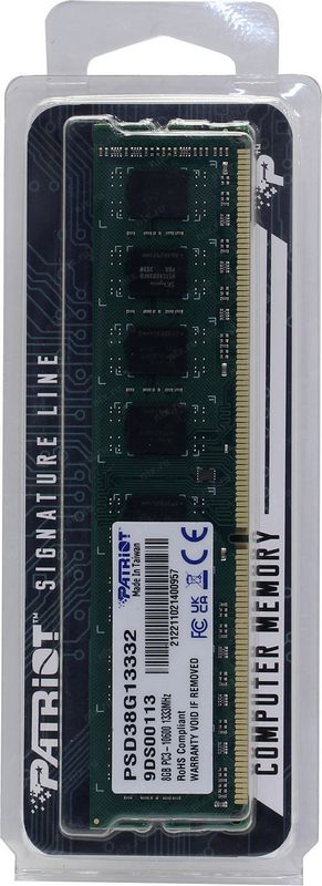 Оперативная память 8Гб Patriot PSD38G13332 DDR3 PC3-10600 CL9 1,5V