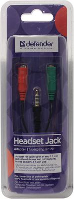 Переходник аудио Defender 63012 Jack 4pin 3,5мм (M)-2x3pin (F)