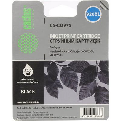 Картридж Cactus CS-CD975 черный для HP Officejet 6000 6500 7000 7500 53мл №920XL