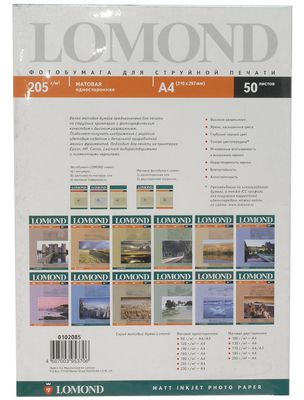 Фотобумага Lomond 0102085 A4 50л. 205г/м2 матов. односторонняя струйн. до 2880dpi