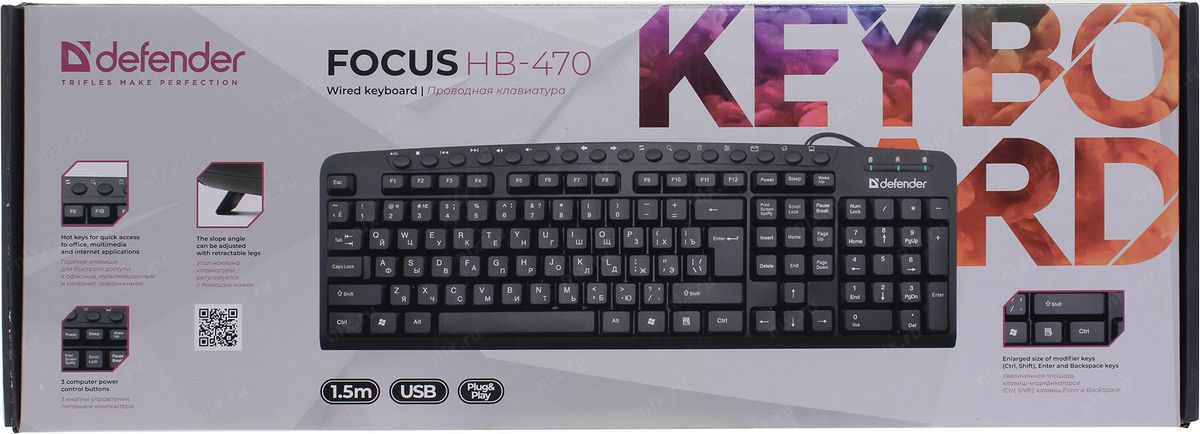 Клавиатура Defender Focus HB-470 USB черный бесшумная (45470)