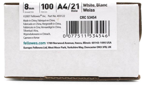 Пружины Fellowes FS-53454 Пластиковые для переплета 8 мм (на 21 - 40 листов) белые 100шт