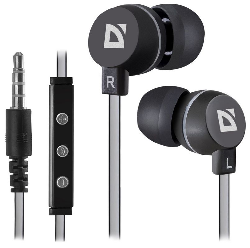 Гарнитура Defender 63453 черный 1,2м Pulse-453 , для Android 4-пин 3,5 мм jack, плоск.