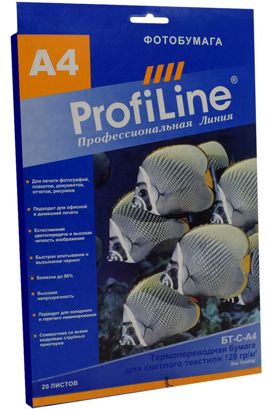Бумага Profiline БСП40-20 A4 20л. для термопереноса изображения на светлую ткань с термоиндикатором, 0,17мм