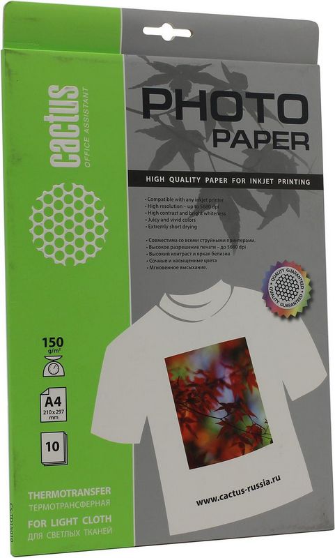 Фотобумага Lomond 0807420 A4 50л. 150г/м2 Термотрансфер для лазерной печати для светлых тканей)