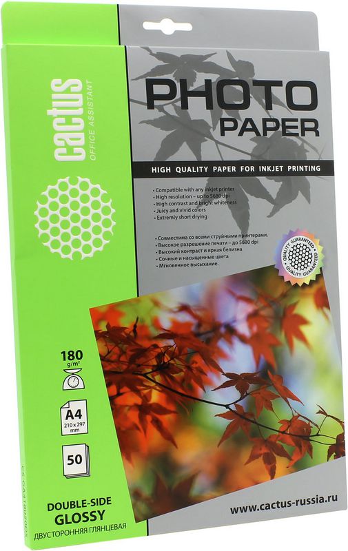 Cactus CS-GA418050DS 50л. 180г/м2 глянц. двусторонняя струйн. Фото A4