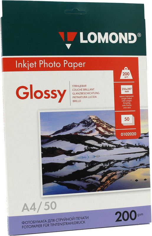Фотобумага Lomond 0102020 A4 50л. 200г/м2 глянц. струйн. для струйной печати до 2880dpi hv