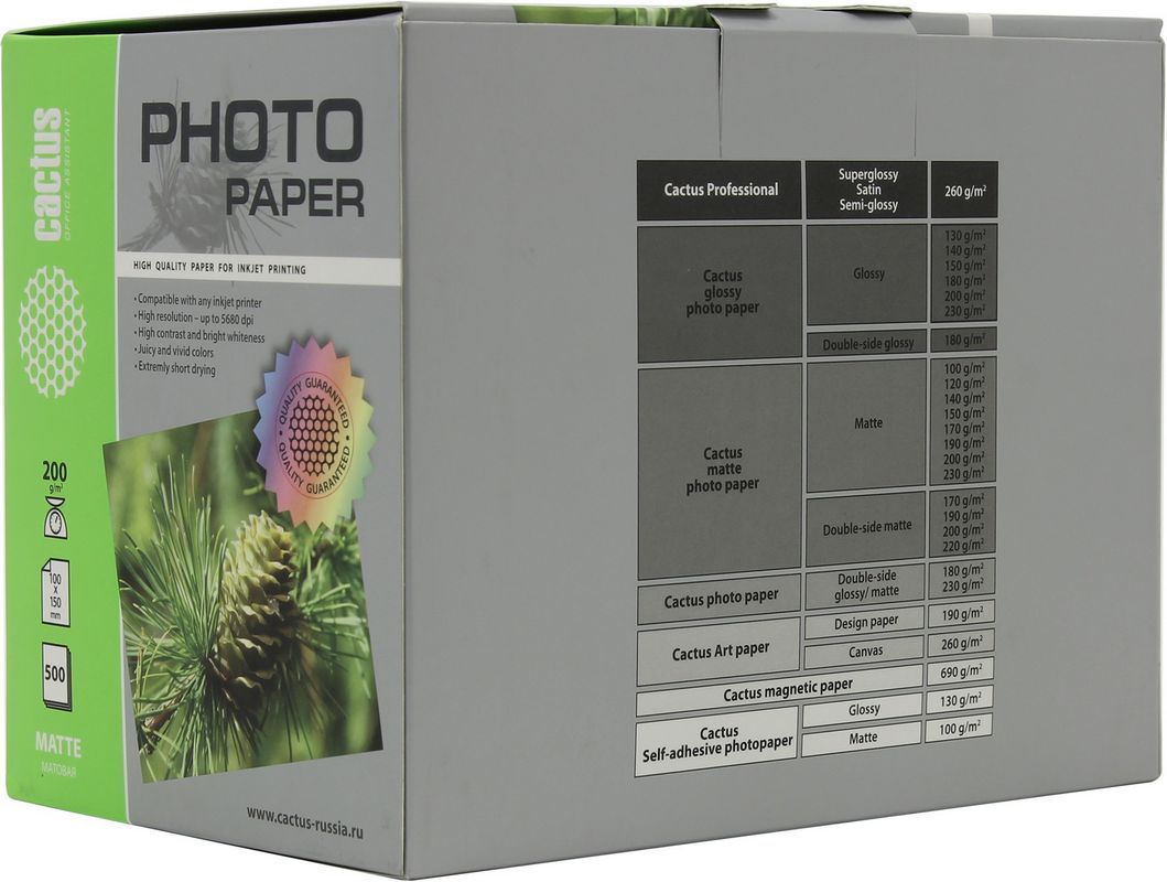 Фотобумага Cactus CS-MA6230500 A6 (10x15см) 500л. 230г/м2 матов.