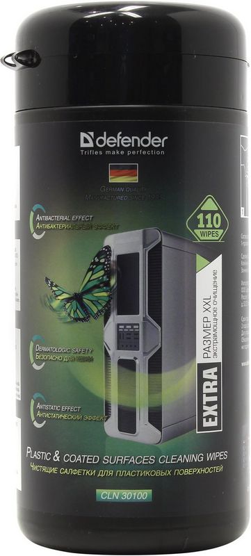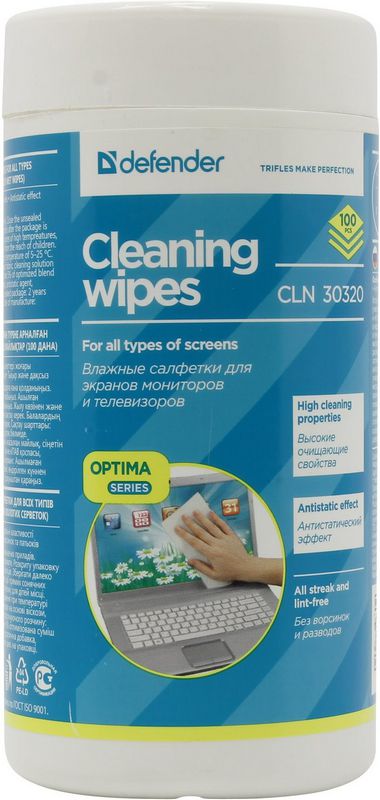 Салфетки влажные Defender 30300 в пластиковой тубе для компьютеров и оргтехники (100шт)