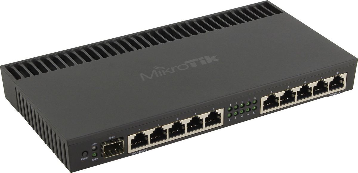 Mikrotik CSS610-1Gi-7R-2S+OUT netPower Lite 7R with 8 x Gigabit Ethernet ports (7 with Reverse POE-in, 1 with PoE-OUT), 2 x SFP+ cages, SwitchOS, outdoor enclosure, mounting kit (power supply NOT included)