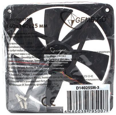 Вентилятор для корпуса Gembird 16610 140x140x25 3pin втулка, провод 40 см