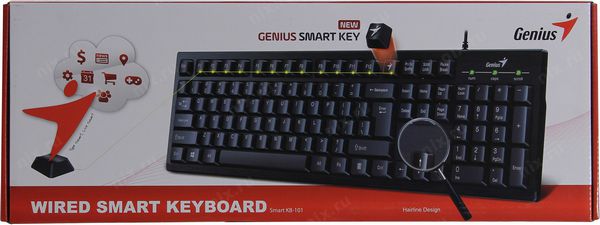Описание Клавиатура Genius Smart KB-101 - это персонализируемая "умная" клавиатура. С помощью приложения SmartGenius вы можете присвоить различные функции клавишам с F1 по F12 и получить Skype-клавиатуру,Word-клавиатуру, клавиатуру эмодзи и ещё множество вариантов. Пользователи традиционно отмечают высокое качество сборки, доступную цену, удобство и лёгкость в использовании. Smart KB-101 Black, классическая, мультимедийная, SmartGenius, влагоустойчивая, клавишь 105, провод 1,5 м, USB