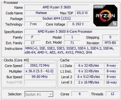 Модель Ryzen 5 3600