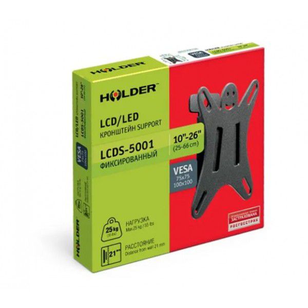 Кронштейн Holder LCDS-5001 METALLIC для ТВ 10-26” настенный фиксированный (до 25кг)