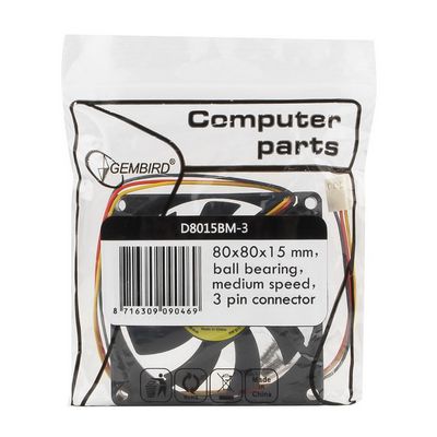 Вентилятор для корпуса Gembird D8015BM-3 80x80x15 3pin подшипник, провод 30 см