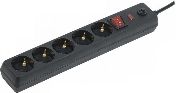 Сетевой фильтр Iek WFP10-16-05-05-ZK-K02 5,0м 5 розеток черный 16A СФ-05К-выкл. 3х1мм2