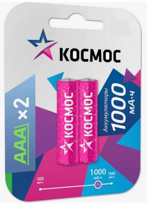 Аккумулятор КОСМОС 153782 1,0A 1000mAh КОСМОС KOCR03NIMH(H) R03 NiMn 1000мАч BP-2 (блист.2шт.)