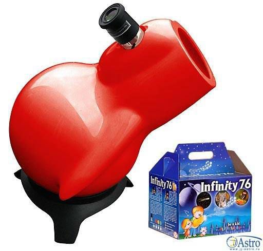 Телескоп cистемы Ньютона, изобретенный Исааком Ньютоном в 1688 году, теперь не только научный инструмент...Infinity 76 превращает популярный телескоп системы Ньютона в веселую и образовательную игрушку для наших маленьких ученых. Телескоп обеспечивает резкие и яркие изображения, позволяя детям проводить как дневные наблюдения, так и вечерние наблюдения звездного неба.Infinity 76 объединяет забаву с исследованием окружающего мира, расширяя знания и кругозор у детей. У детей появляется интерес к изучению окружающего мира и к обучению вообще. Телескоп служит также привлекательным украшением детской комнаты, когда не используется.В отличие от похожих дизайнов других производителей, в данном телескопе Skywatcher 76 применено настоящее стеклянное параболическое зеркало диаметром 76мм с фокусным расстоянием 300мм (1:4) и просветленный модифицированный окуляр системы Кельнера (30x), что, несмотря на "игрушечный" внешний вид телескопа, обеспечивает изображения достаточно высокого качества в своей категории.