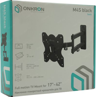 Кронштейн ONKRON M4S BLACK черный 17-42’ макс 200x200 мм, 2 колена, наклон -+ 8x, поворот: 180°, от стены 65-448 мм, макс вес 35кг, ый