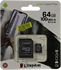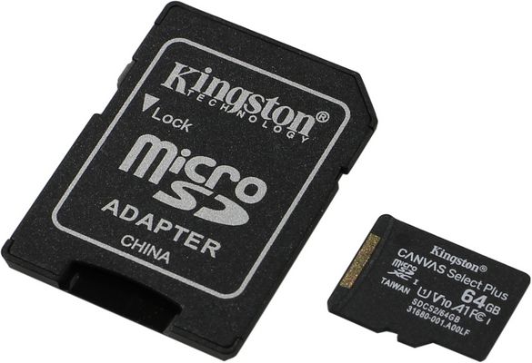 Карта памяти 64Гб Kingston SDCS2/64GB microSDXC Class 10 UHS-I Canvas Select up to 100MB/s с адапт.
