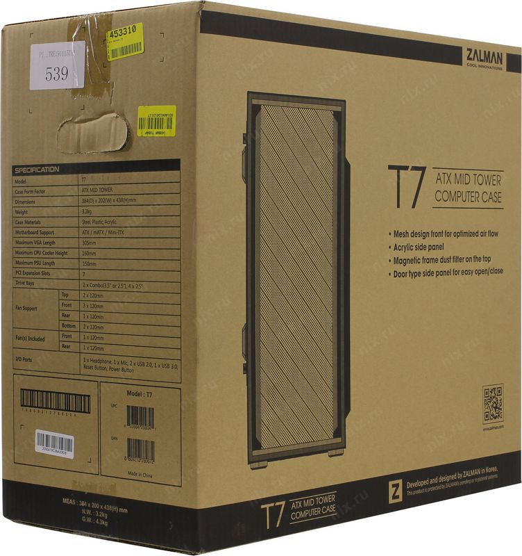 Корпус Zalman ZM-T7 ATX без БП черный 3x120mm 2x2.0 1x3.0 audio